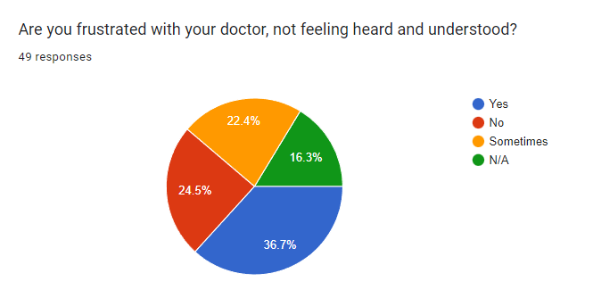 Very few turn to doctors and specialists (19.6% and 8.7%). There is a lack of confidence in the medical providers as people often feel dismissed, invalidated, and not supported.